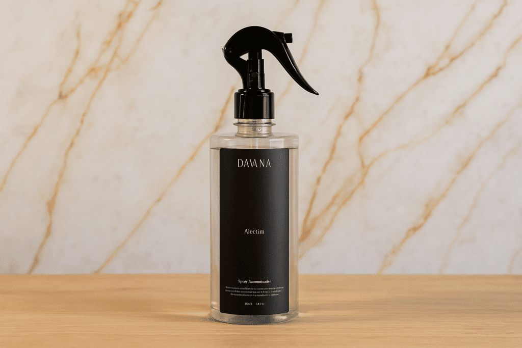Aromatizador em spray com alta fixação, ideal para uso diário em ambientes residenciais ou corporativos.